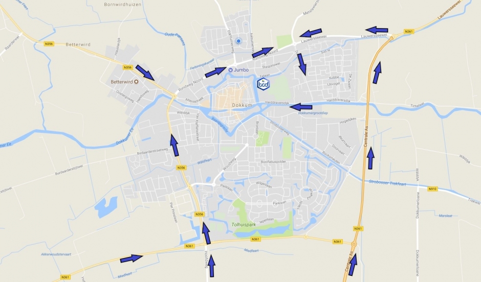 Het adres voor de routeplanners is: Harddraversdijk 2, 9101 XA Dokkum